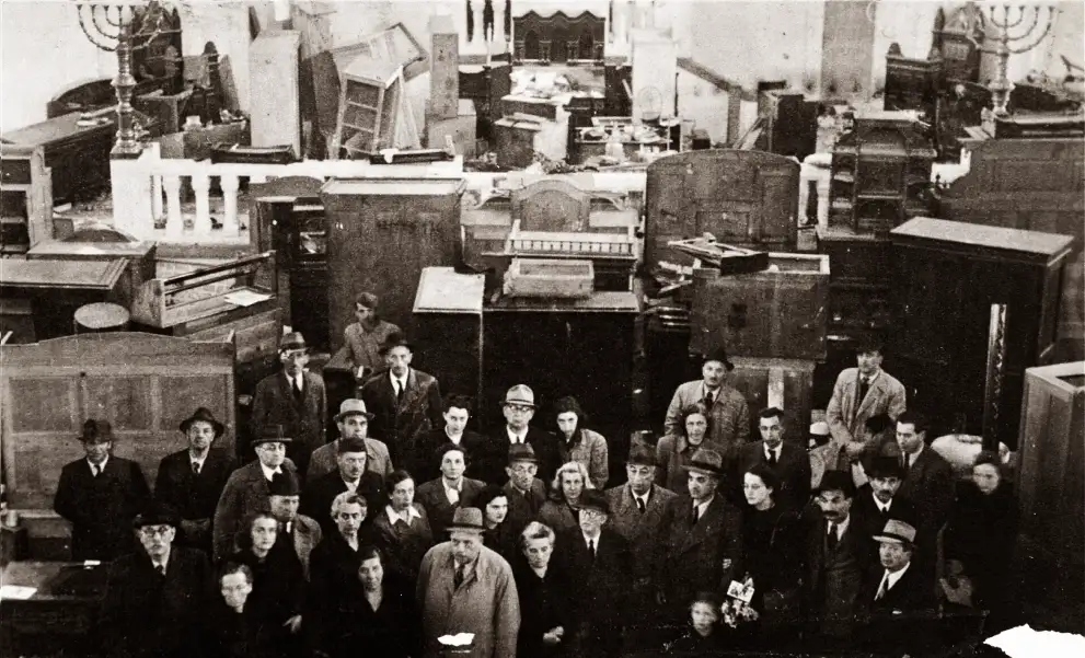 Jevreji zatočeni u oskrnavljenoj sinagogi u Novom Sadu pre odvođenja u koncentracioni logor.
