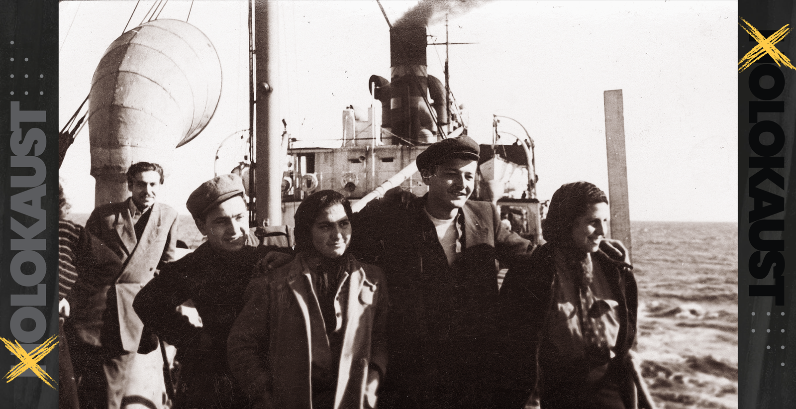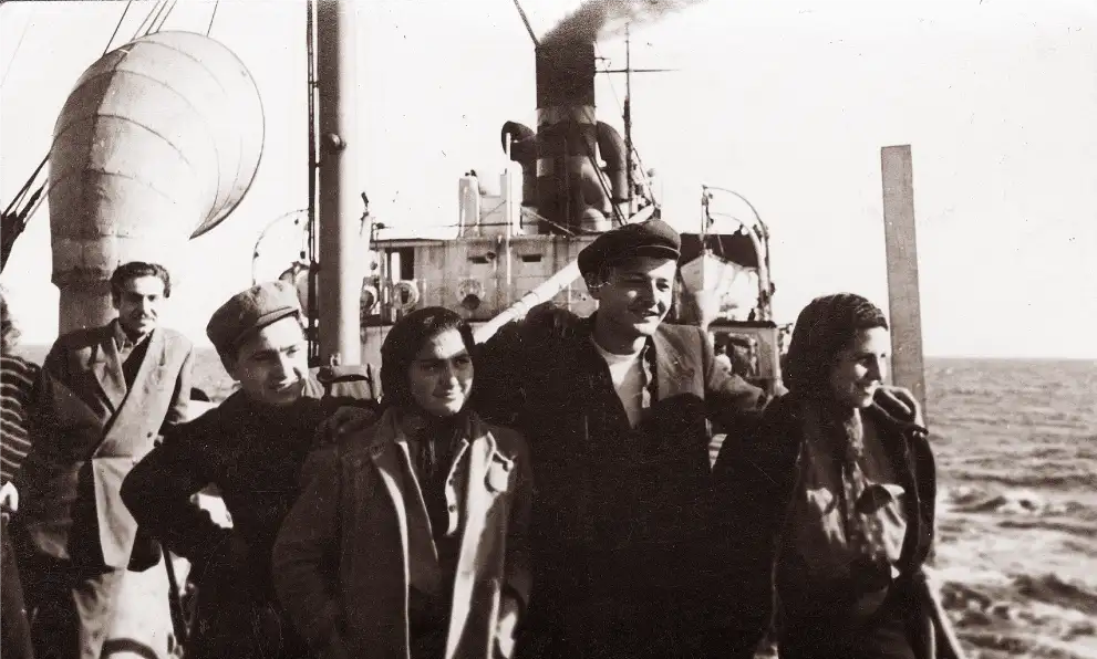 Jugoslovenski Jevreji na palubi broda Kefalos, plove iz Bakra u Hrvatskoj za Izrael.