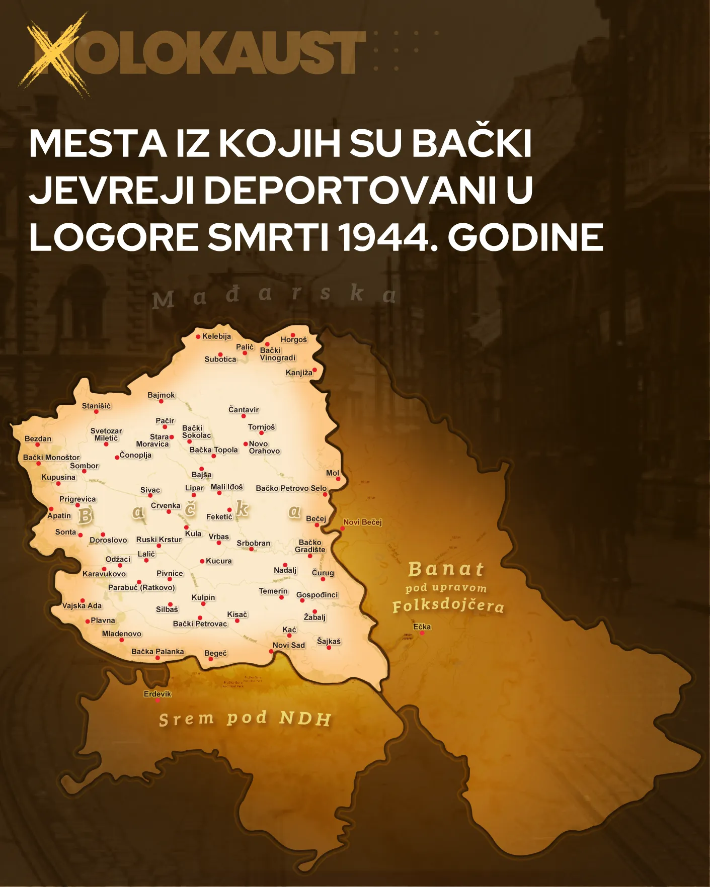 Nakon što su nemačke trupe okupirale Mađarsku u martu 1944. godine, odmah su uvedene još oštrije antijevrejske mere, što je pogodilo i Jevreje u Bačkoj. Pljačka jevrejske imovine završena je u potpunosti, a Jevreji su prinuđeni da nose žutu oznaku na odeći.