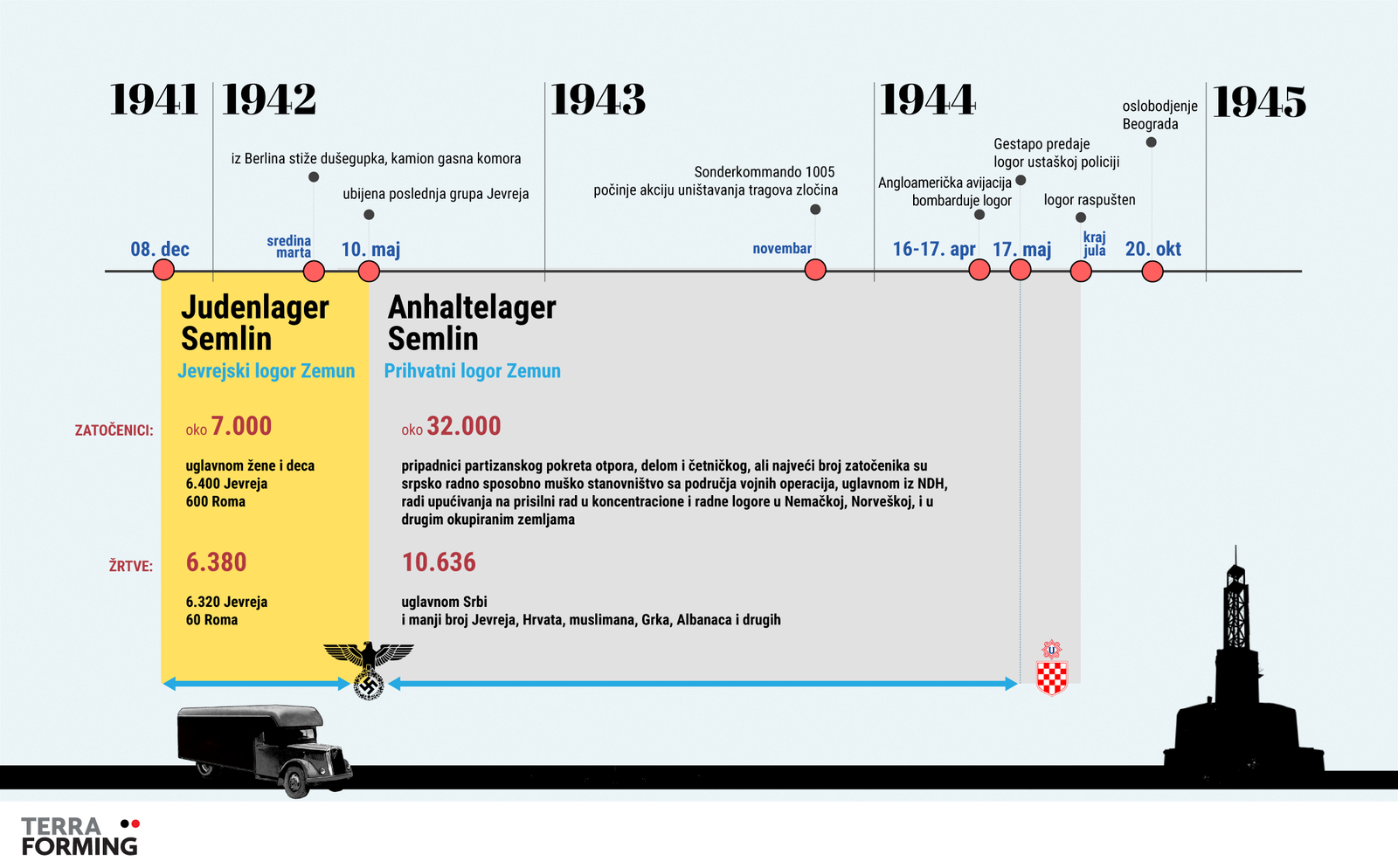 - 7.000 zatočenih - 6.400 žrtava