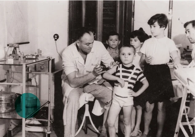 Dr Mirko Polak vakciniše decu, 1954. u Novom Sadu